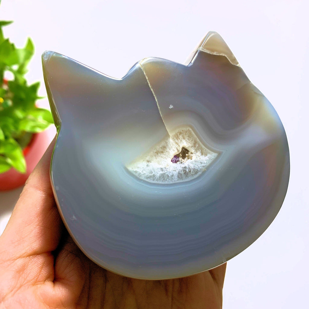 Druzy Quartz Geode & Blue Agate Large Precious Cat Head Carving