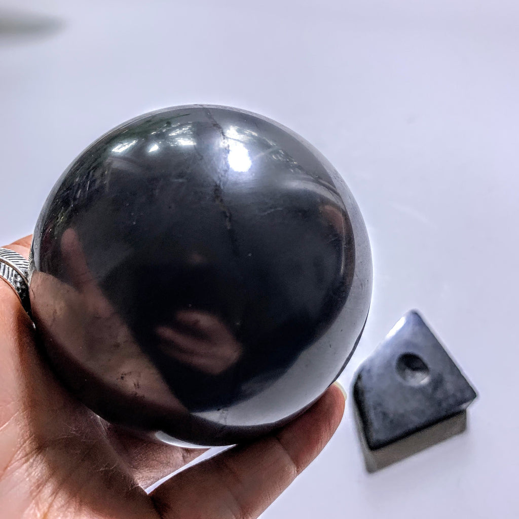 EMF Extreme Protection~Polished Shungite XL Sphere With Shungite Stand From Russia