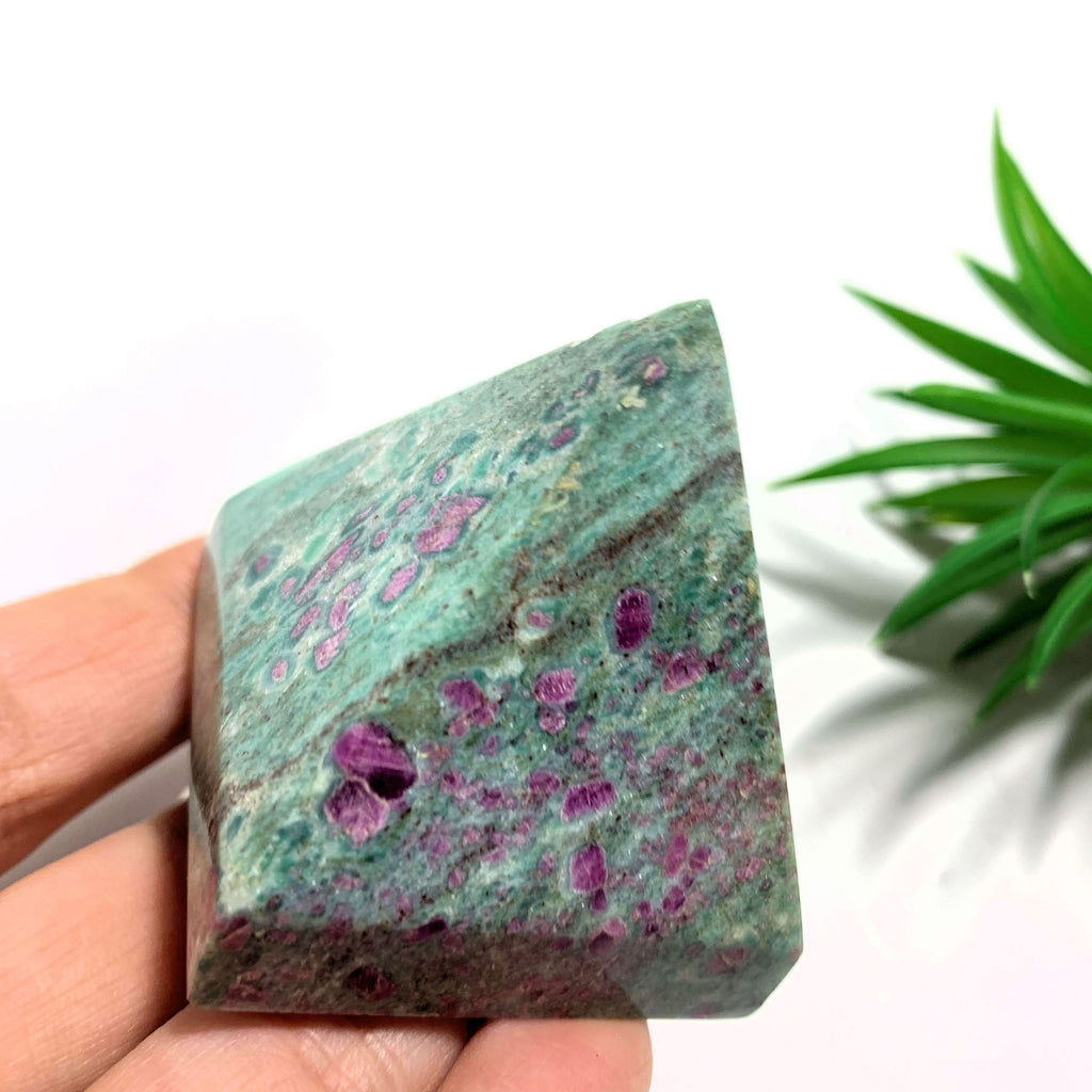 Gorgeous Contrast~Ruby Fuschite Pyramid Display Carving
