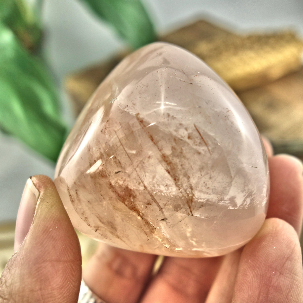 Optical Red Hematoid Quartz Palm Stone From Madagascar