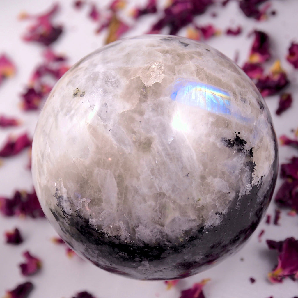 Powerful XL Rainbow Moonstone & Black Tourmaline Sphere Carving