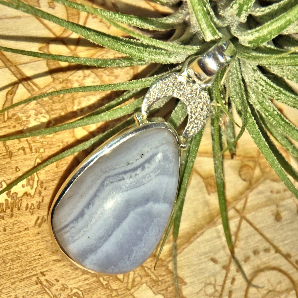 Serenity Blue Lace Agate Sterling Silver Pendant (Includes Silver Chain)