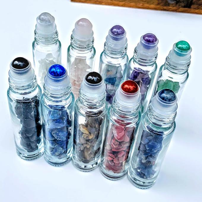 Set of 10 Gemstone Roller Glass Bottles For Essential Oils