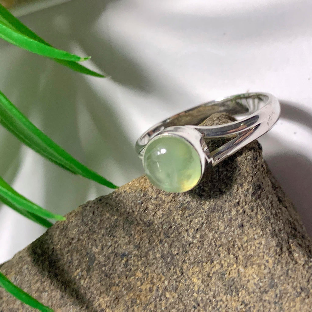 Cute Dainty Mint Green Prehnite Sterling Silver Ring (Size 7)