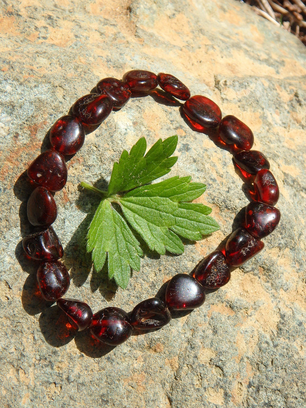 Dark Burgundy Bead Lithuanian Baltic Amber Bracelet on Stretchy Elastic