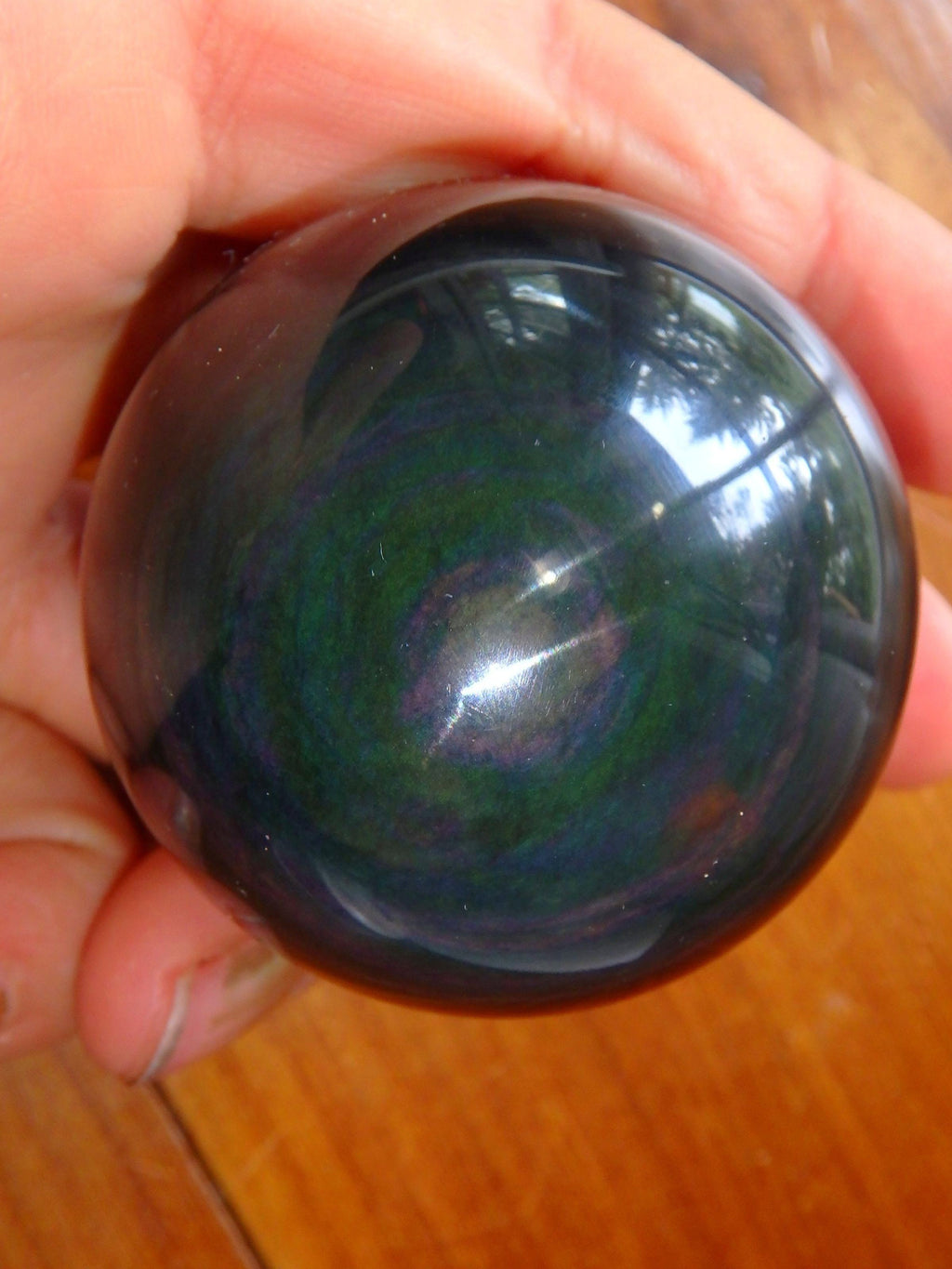 Dark Mysterious Flashes of Rainbows Obsidian Sphere Carving